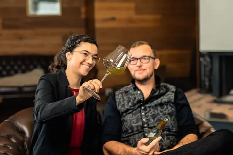 Two restaurateurs sit together and, over a bottle of wine, ponder the perfect non-alcoholic alternative for their guests and themselves. Due to very high standards, the idea of producing pure gold from the Alpine region itself is implemented.